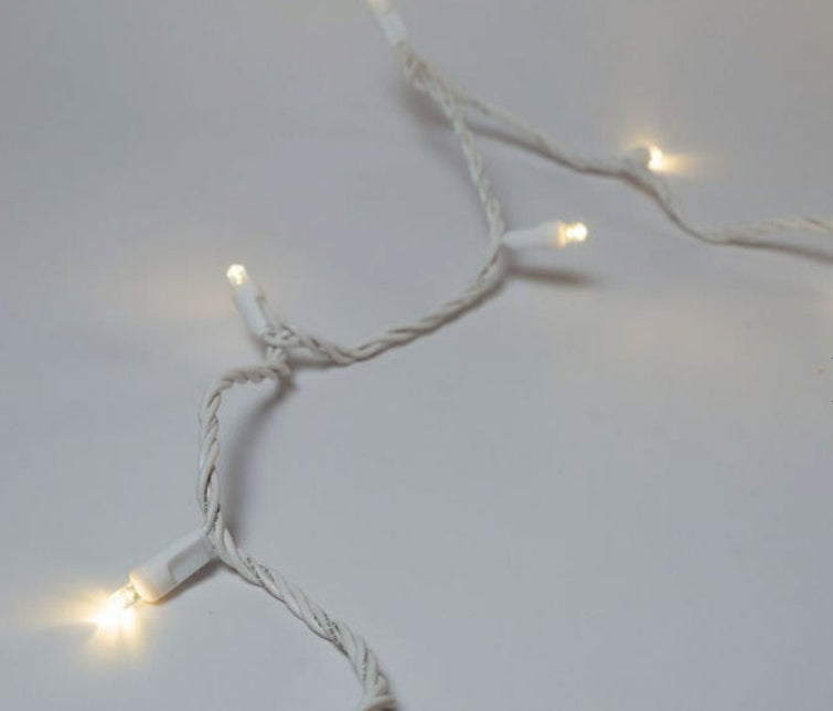 Commercial-grade LED mini light string with sealed sockets for indoor/outdoor use.